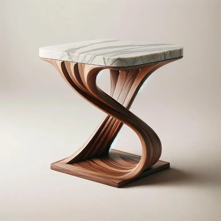 The “Wind Whisperer” table is inspired by the Cherokee word for wind (unole), representing the power of nature’s breath, which brings change, movement, and renewal. This chair has a light, airy structure, with a curved, flowing frame crafted from lightweight aspen wood. The design captures the essence of wind in motion, with smooth, organic lines that seem to ripple like a breeze.